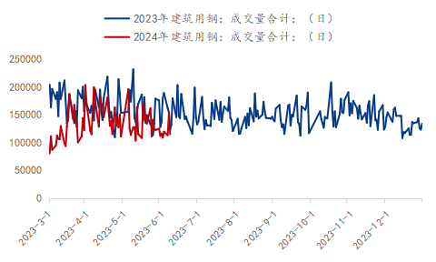 以樣本企業成交量數據來看, 剔除春節前后假期影響,2024年建筑鋼材成交量普遍低于2023年水平,尤其5月份相比去年同期,成交明顯縮量,成交持續走弱也佐證了供給端的壓力愈發明顯,主動減產的常態化。